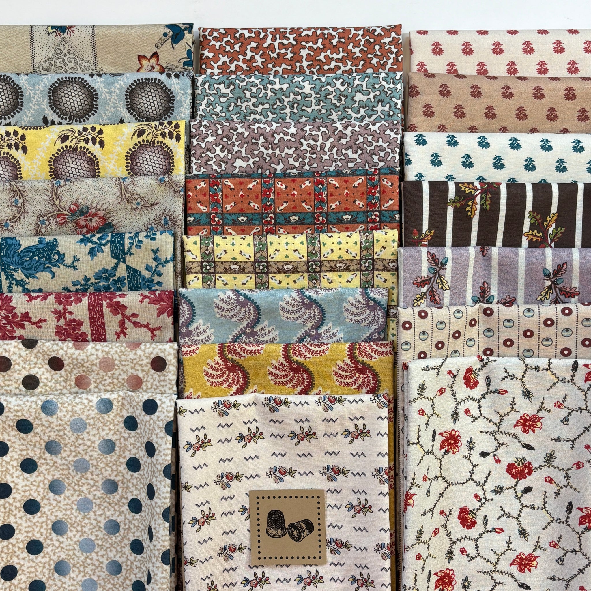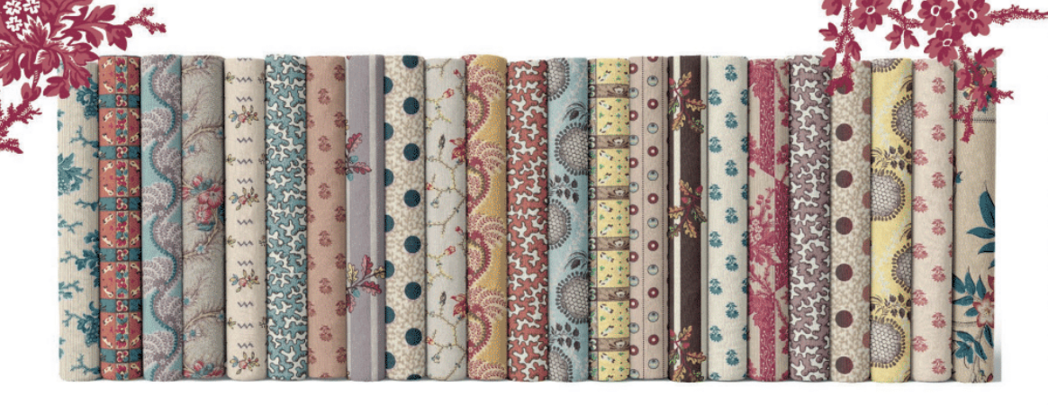 23 fat quarters from the Inglenook Collection by Margaret Mew inspired by Antique British fabrics. Each fat quarter is 18 x approx. 22 inches, 5.75 yards total