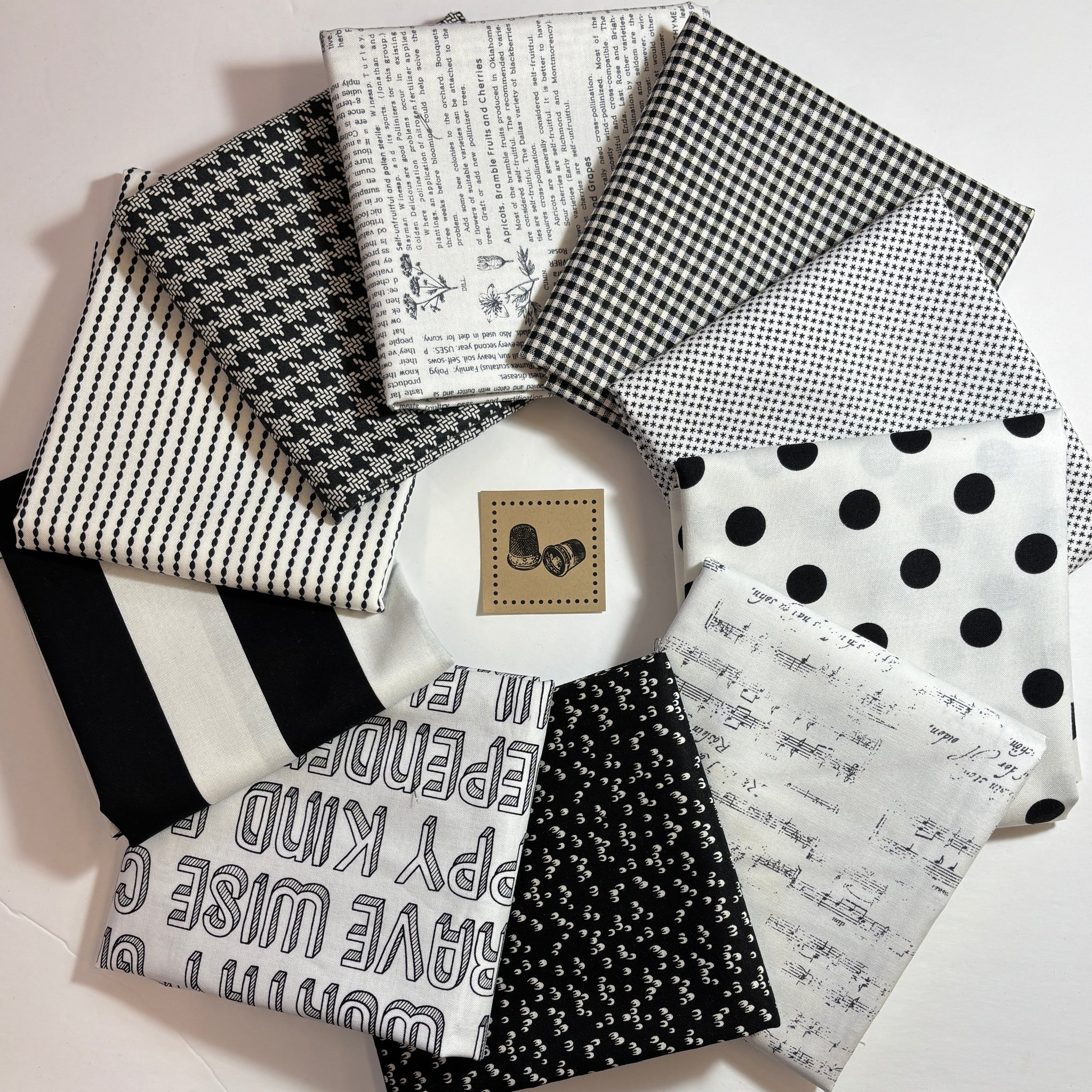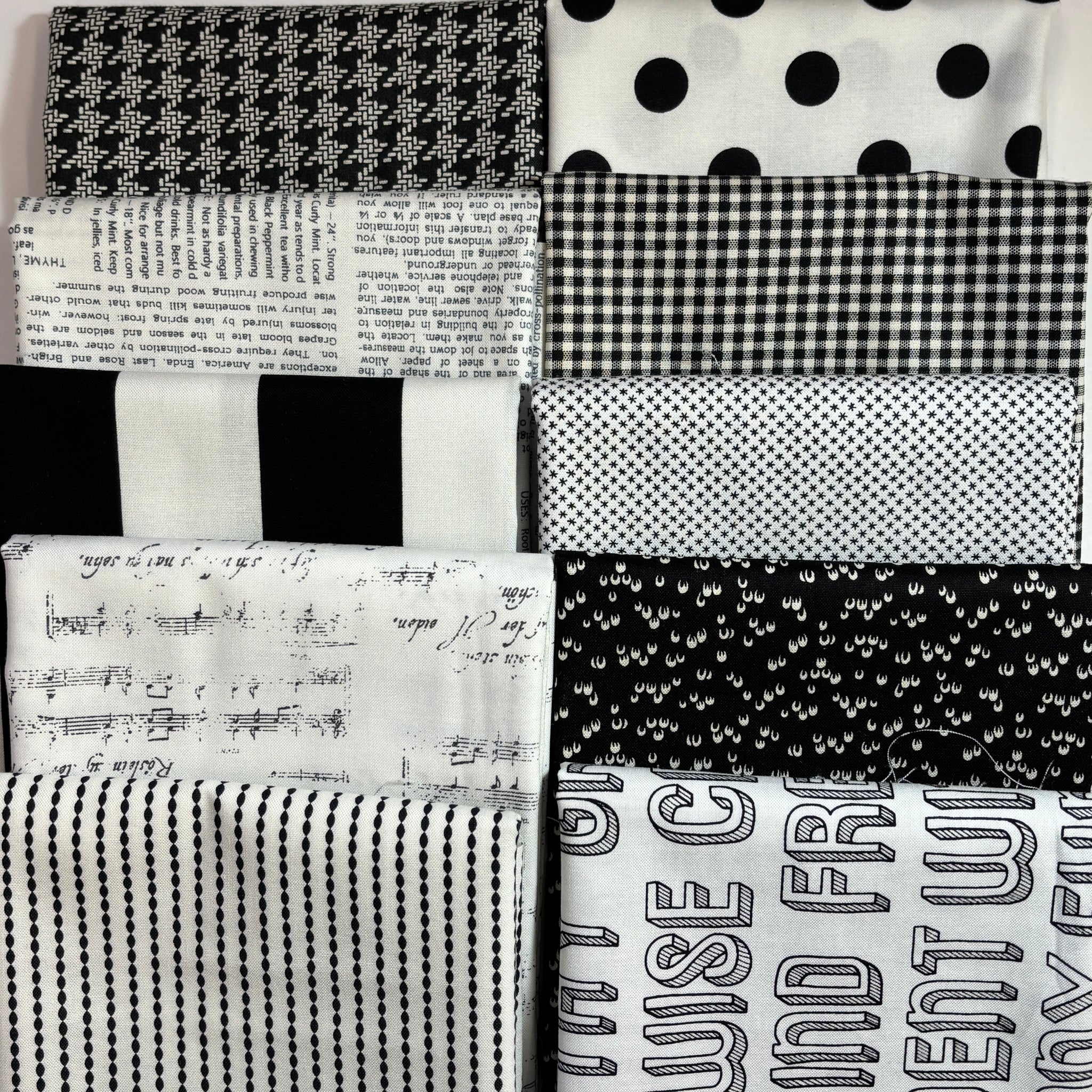 Curated stack of 10 fat quarters (each fat quarter 18x22 approx.), a total of 2.5 yards